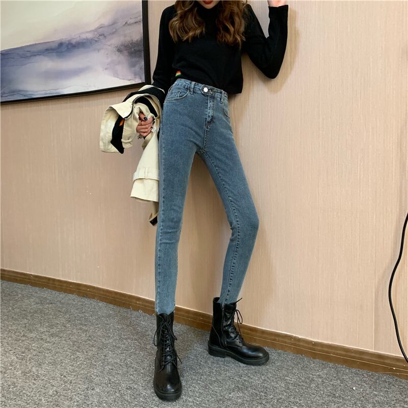 スプリングオータムレッドハイウェストウェストスキニージーンズ レディース薄手パンツ 春物 秋物 試着室52851401812