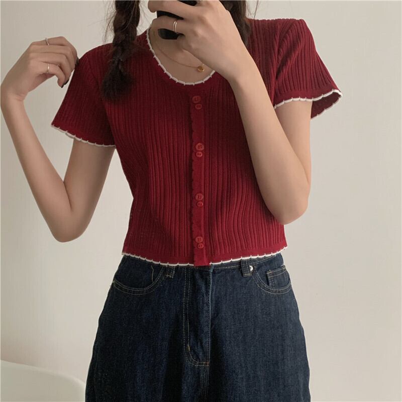ホワイトVネックセーター スリムショートTシャツ サマートップス レディース 夏物 試着室46853589502