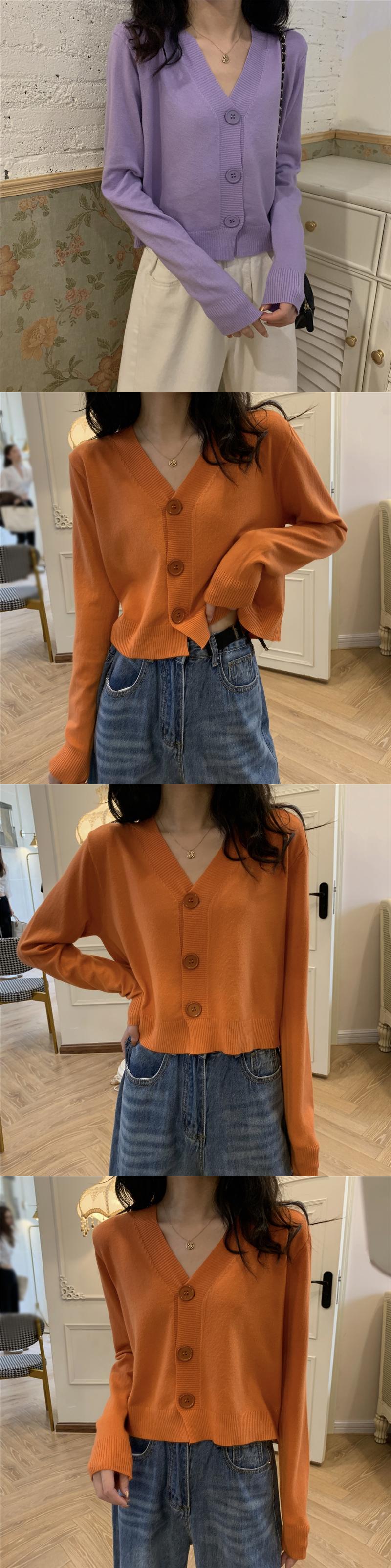 Vネックショートカーディガントップス オータムセーター レディース ロング 秋物 試着室85093491984