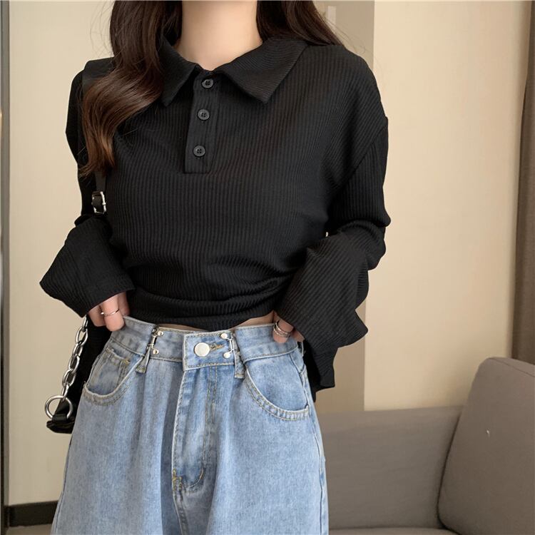スプリングオータムクロップド薄手カラーシャツ ロング 春物 秋物 試着室56024225158