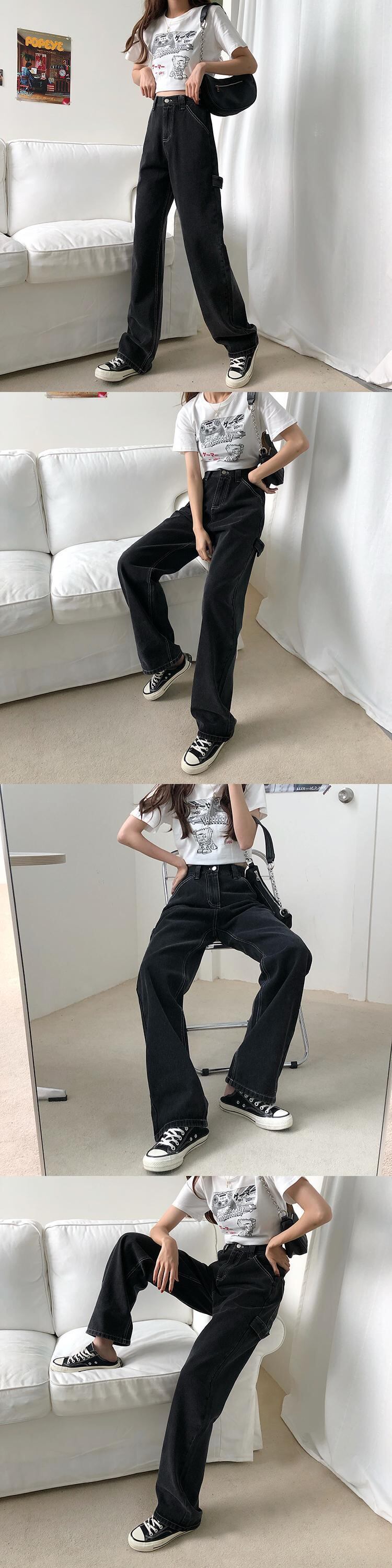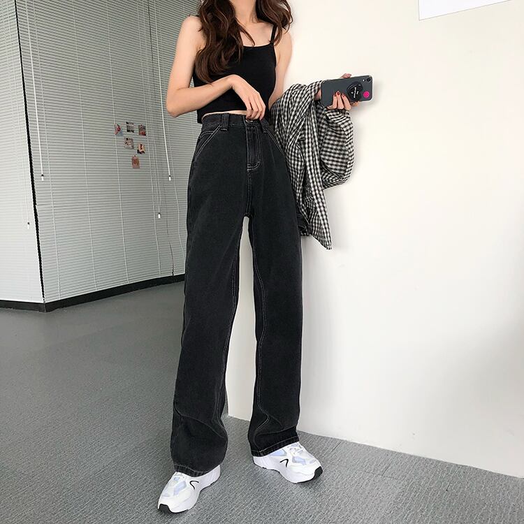 ウェストスリムブラックパンツ スプリングオータムレッドジーンズ レディース 春物 秋物 試着室47366919048