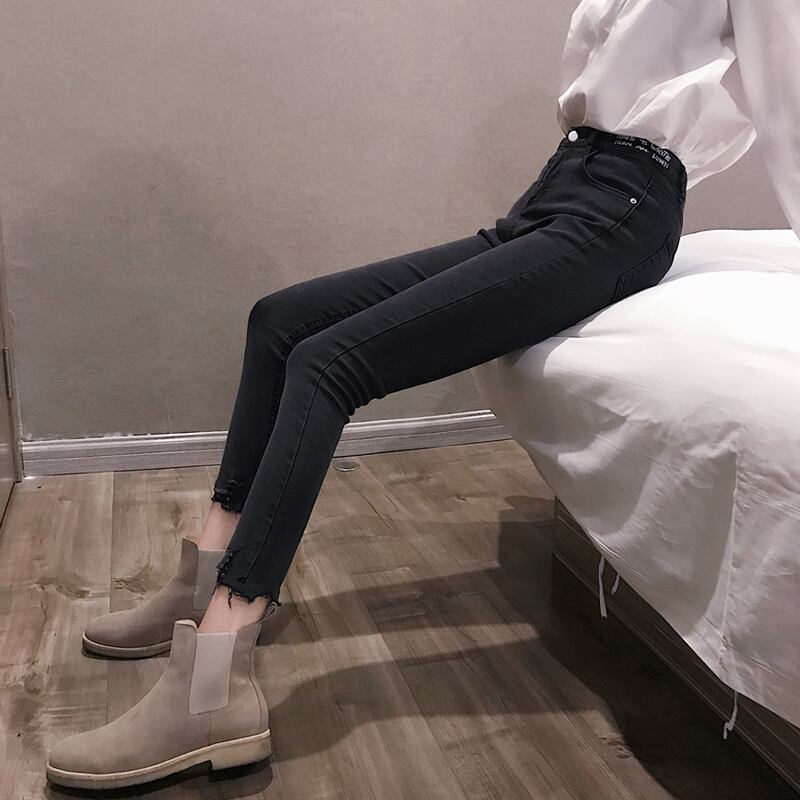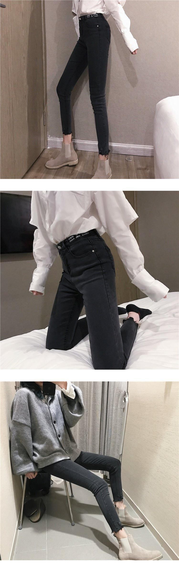 ブラックパンツ ハイウェストウェストスキニージーンズ スプリングスリムクロップド 春物 試着室34454347520