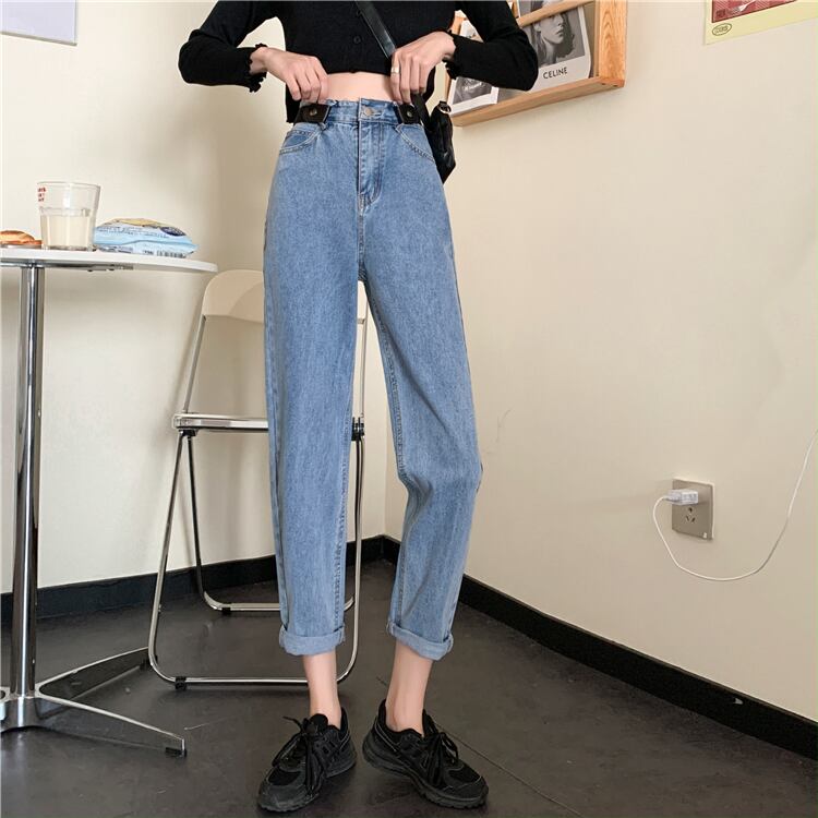 スプリングオータムルーズパンツ ハイウェストウェストジーンズ 薄手 春物 秋物 試着室38323408221