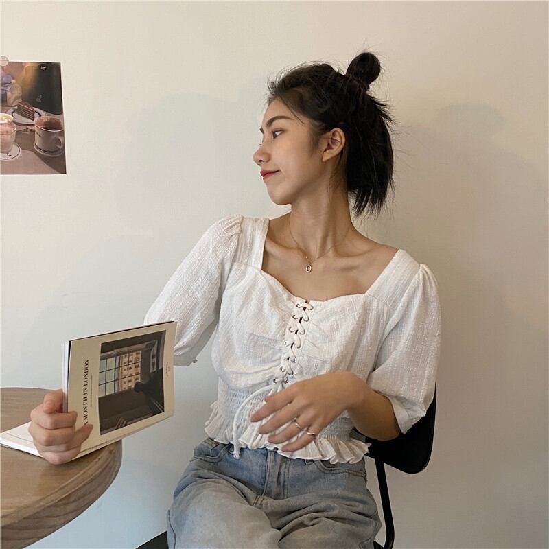 カラートップス オータムショートシャツ 秋物 スクウェア 試着室96175088197