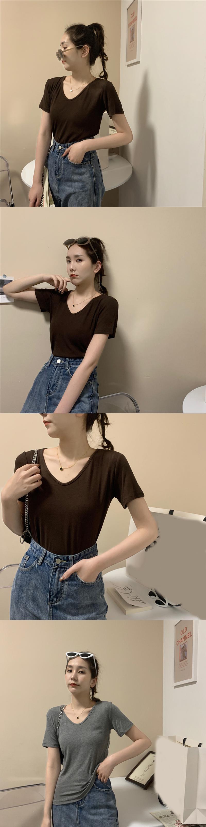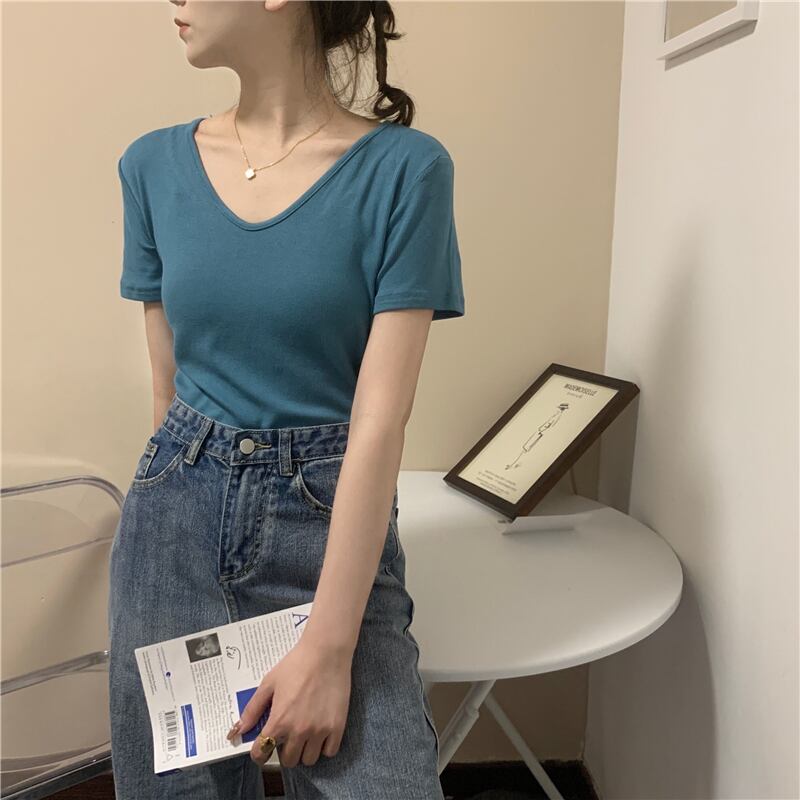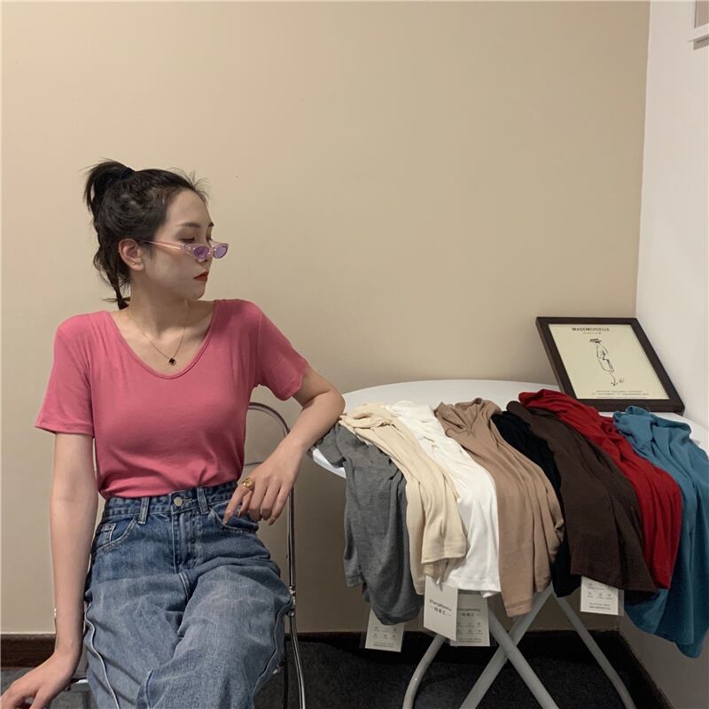 ホワイトTシャツ サマーレッドVネック 夏物 試着室64445042879