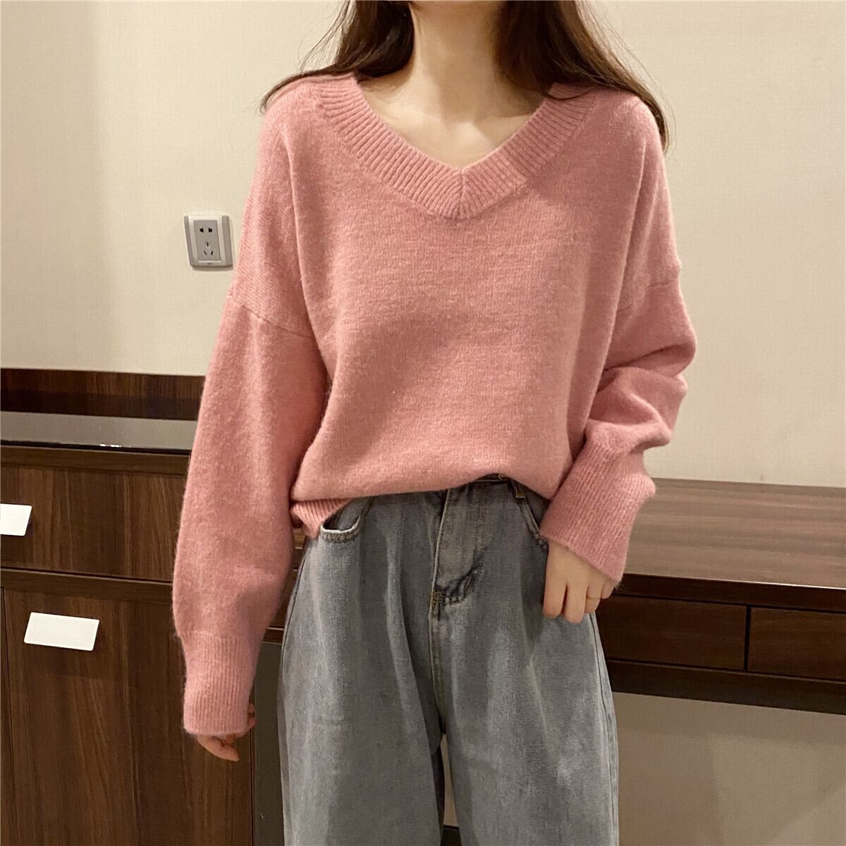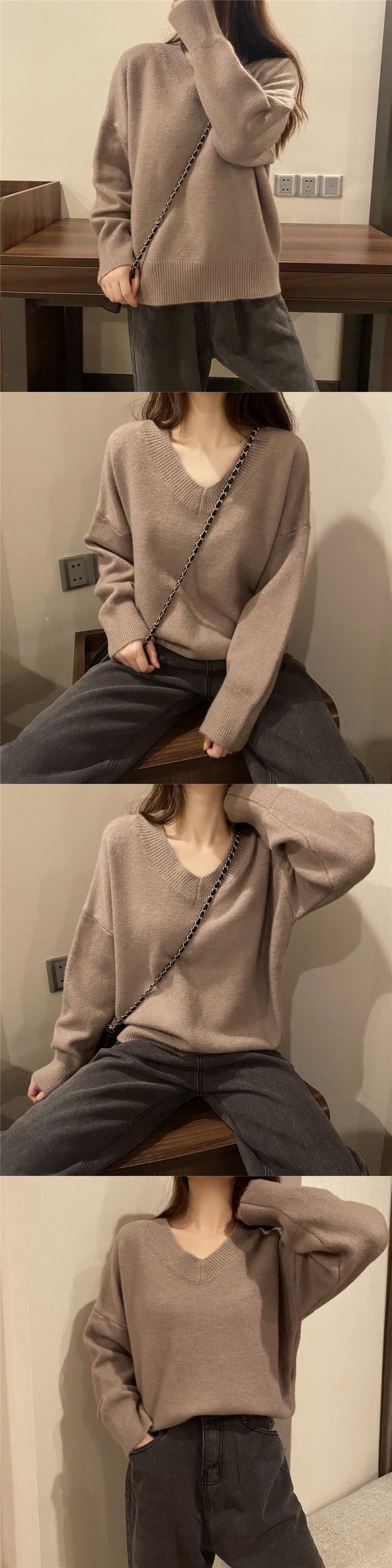 ルーズニットセーター トップス レッドVネックレディース ロング オータム 秋物 ウィンター 冬物 試着室75098631195