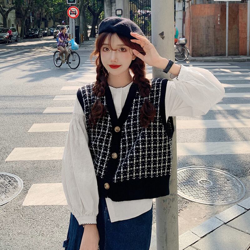 スプリングスタイル格子柄スタンダードセーター レディースオータムニットジャケット トップス レトロ 春物 秋物 試着室38402154104