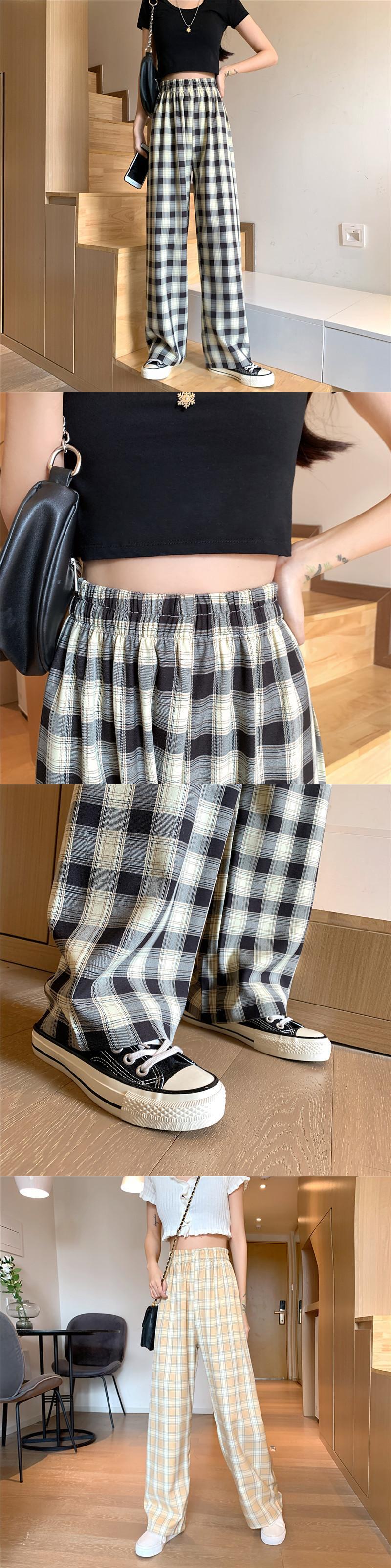ウェスト格子柄パンツ オータムウィンターレッド薄手ルーズカジュアル 秋物 冬物 試着室85112220492