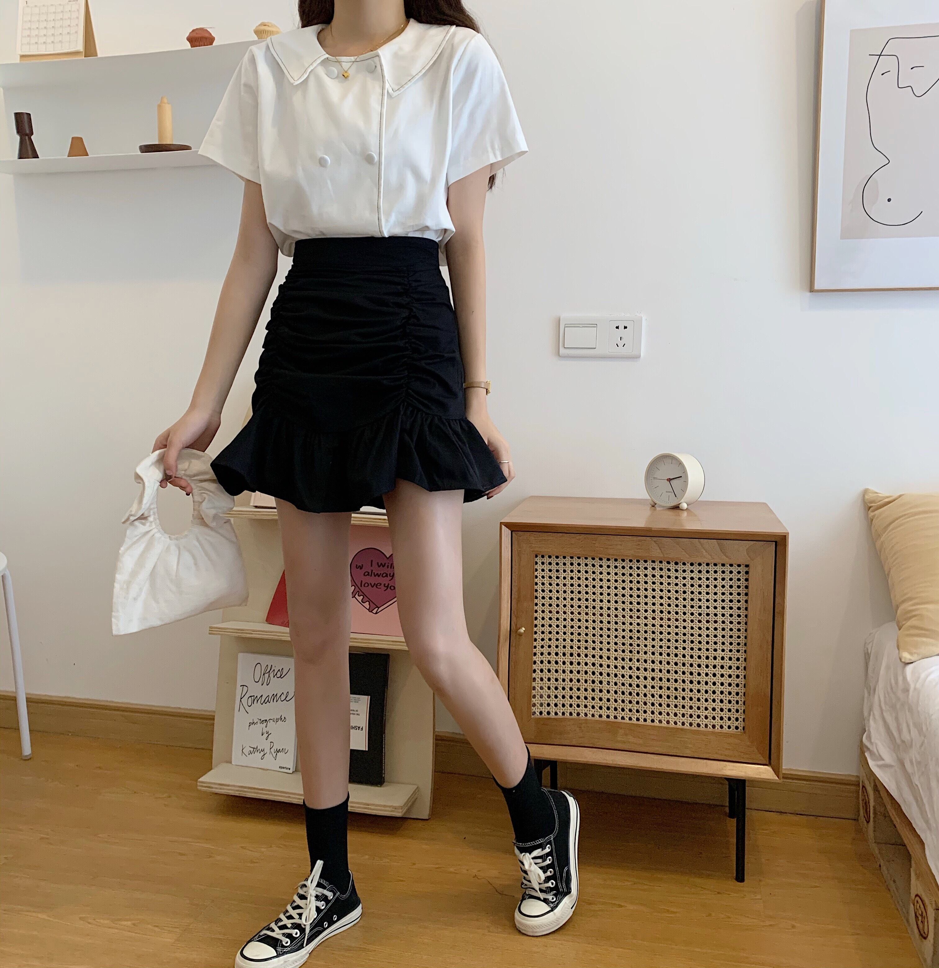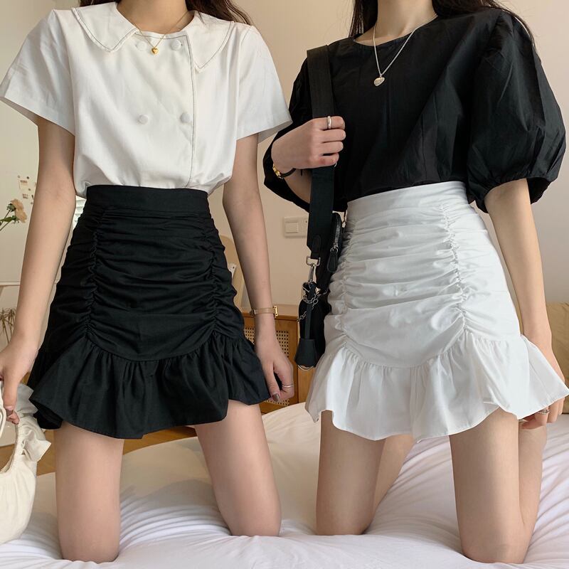 ホワイトハイウェストウェストスカート スプリングスタイルAライン 春物 試着室20443351818