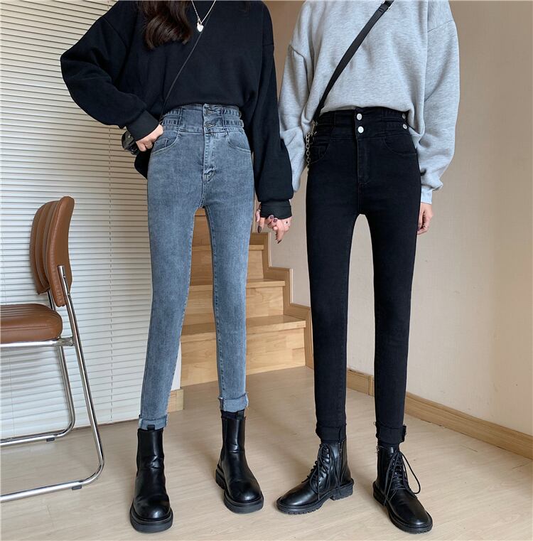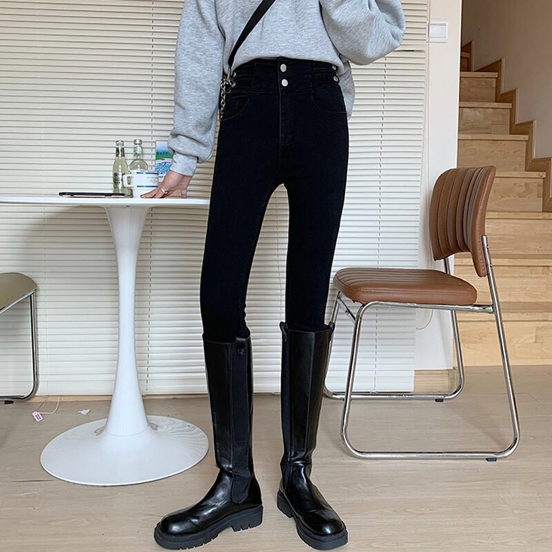 ブラックジーンズ ハイウェストパンツ 薄手スキニー ウィンター 冬物 試着室15469198455