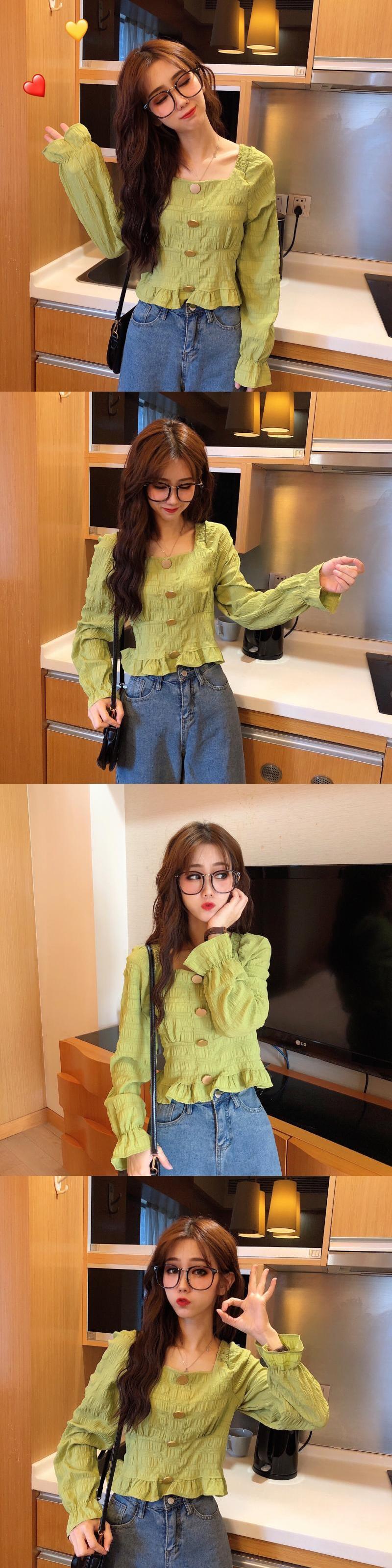 サマー薄手シャツ カラークロップトップ トップス ロング 夏物 スクウェア 試着室758893250