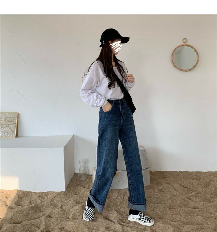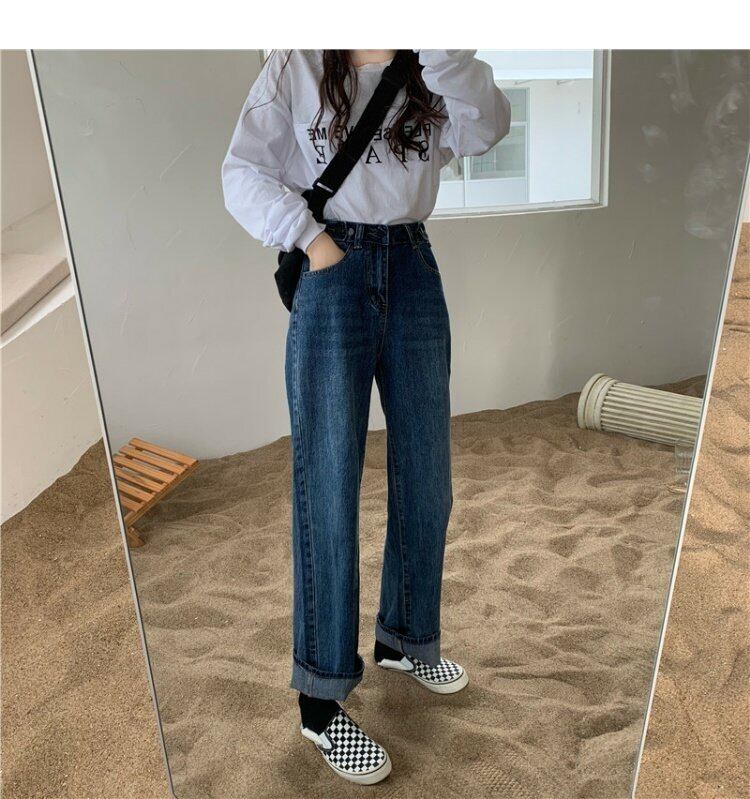 オータムウィンターパンツ ハイウェストウェストルーズジーンズ 秋物 冬物 試着室29569377875