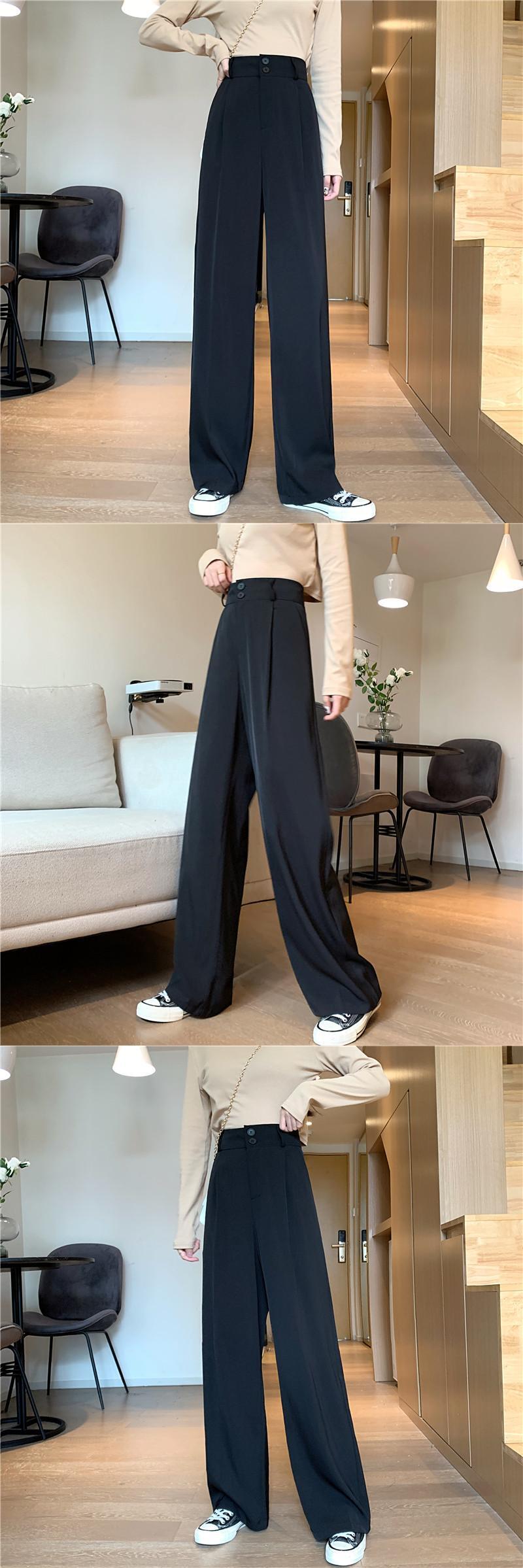 ブラックパンツ ハイウェストスプリングオータムカジュアルルーズ 春物 秋物 試着室84821417647