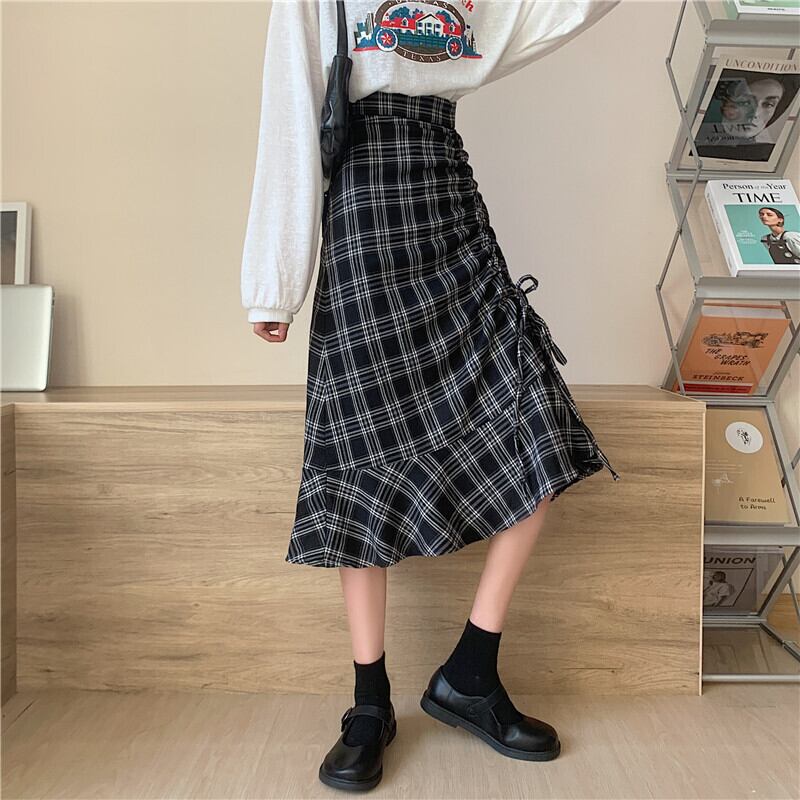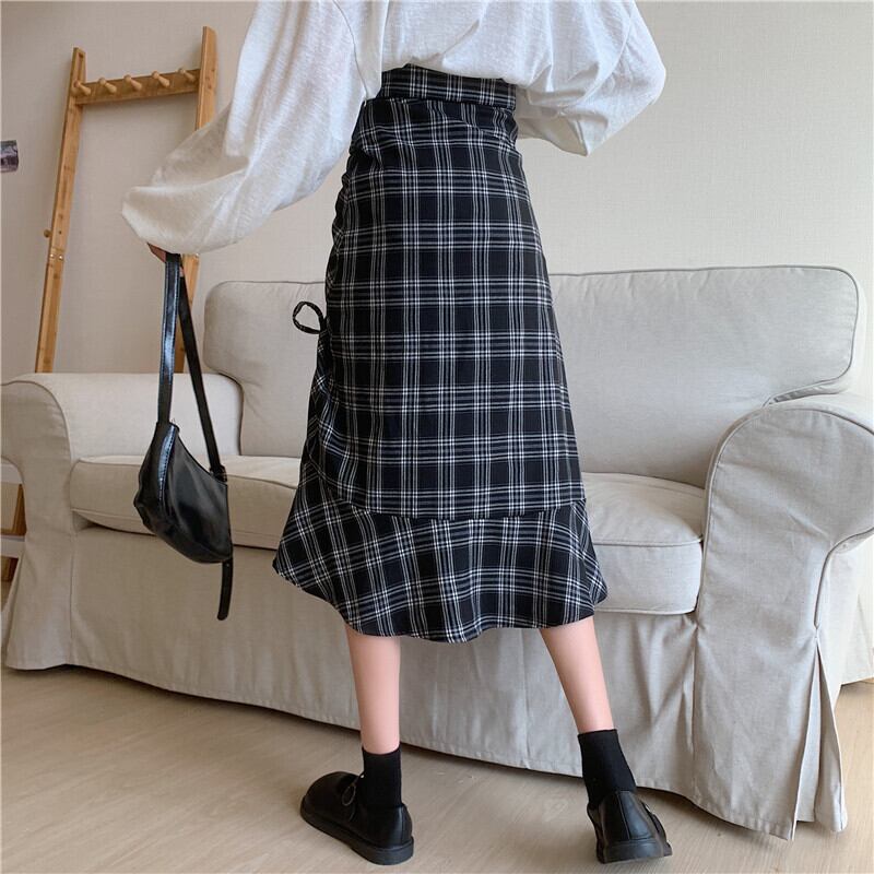 格子柄スカート ハイウェストオータムウィンターAライン 秋物 冬物 試着室17793503423
