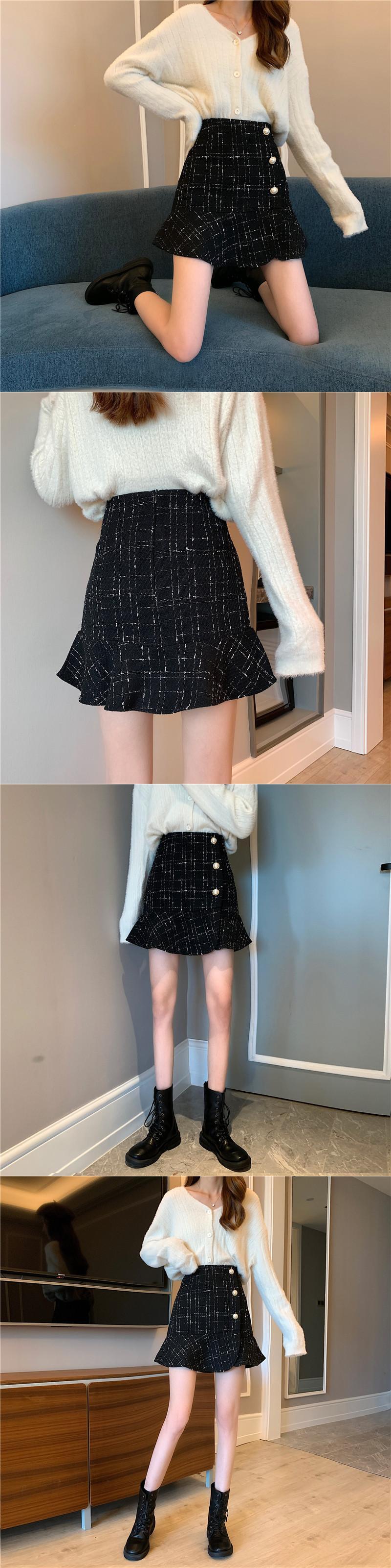 格子柄スカート スプリング薄手Aライン 春物 試着室89638603448