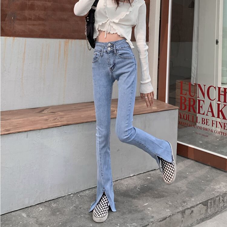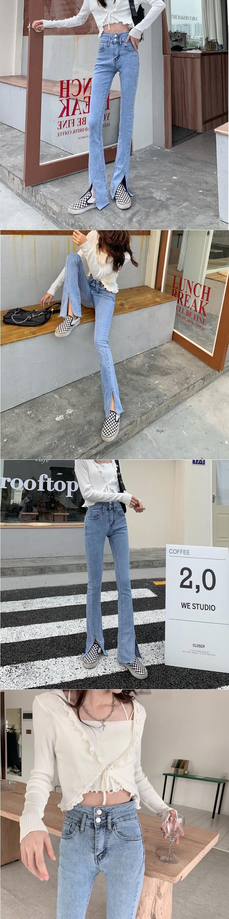 スリットジーンズ ハイウェストウェストスリムフィットサマーパンツ 夏物 試着室12918490238