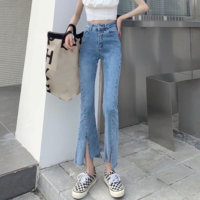 ジーンズ レディースサマーハイウェストウェストパンツ 薄手 レッド 夏物 試着室29653767704