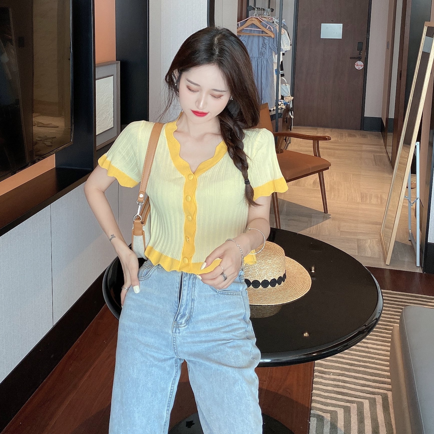 ショートクロップトップ トップス サマーニットTシャツ 夏物 試着室23632095580