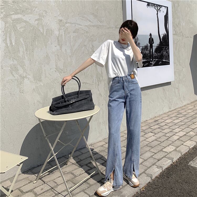 ジーンズ ルーズパンツ サマーハイウェスト レッド 夏物 試着室40134487178