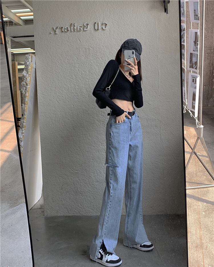 ジーンズ ハイウェストルーズパンツ サマースタイル 夏物 試着室73710269754