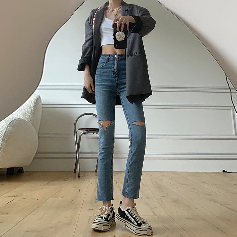 ジーンズ レディースサマーハイウェストパンツ 薄手 夏物 試着室36092317016