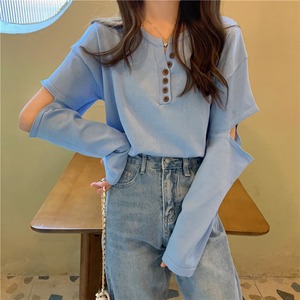 ソリッド カラーシャツ トップス スプリングTシャツ ロング 春物 ソリッドカラー 試着室60703038749