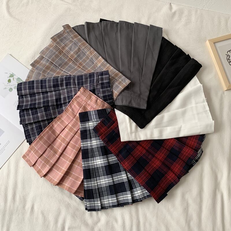 格子柄スカート サマープリーツハイウェストウェスト薄手Aラインショート 夏物 試着室98107183401
