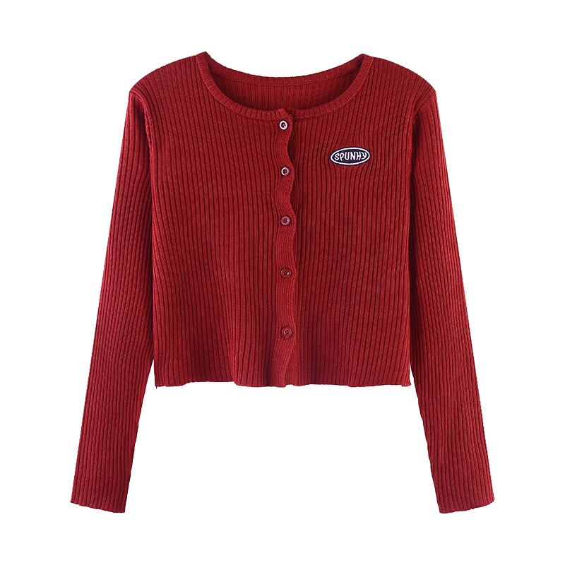 レッドセーター ジャケット スプリングオータム薄手ニットカーディガンクロップドトップス 春物 秋物 試着室53538643732