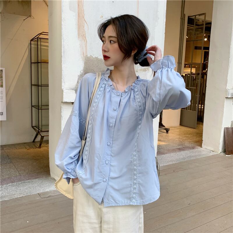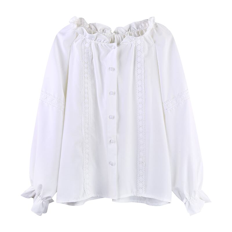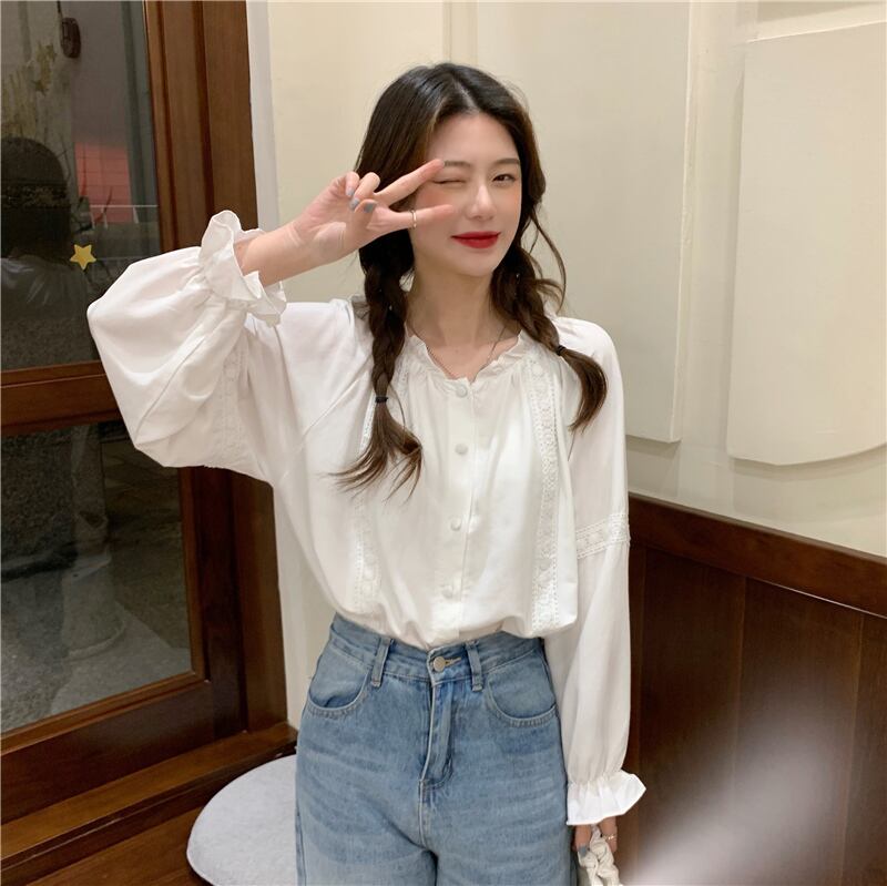 ホワイトシャツ スプリングオータムVネックトップス ロング 春物 秋物 試着室6806691979