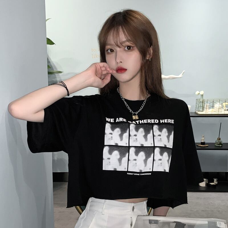 ブラックショートTシャツ サマールーズトップス 夏物 試着室44874141808