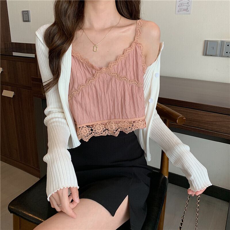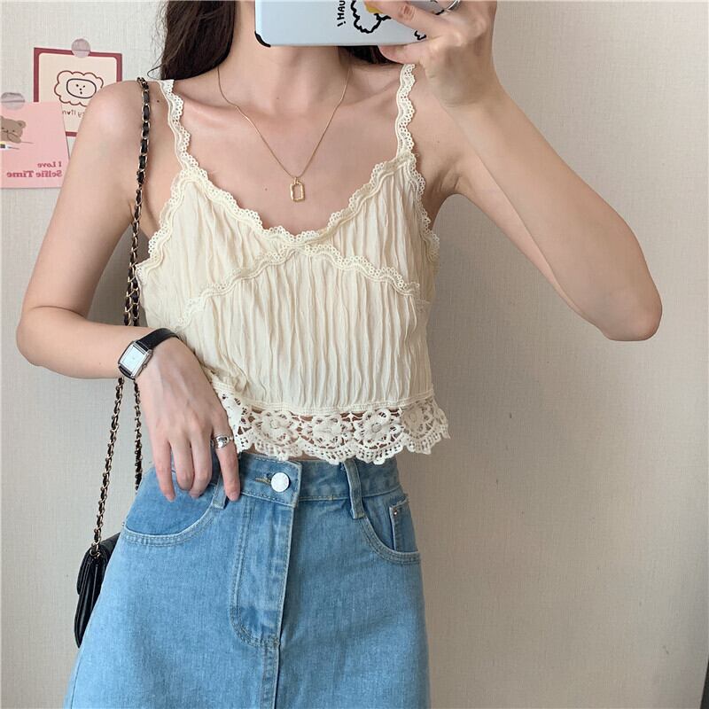 レースサマーノースリーブショートトップス 夏物 試着室53055217874