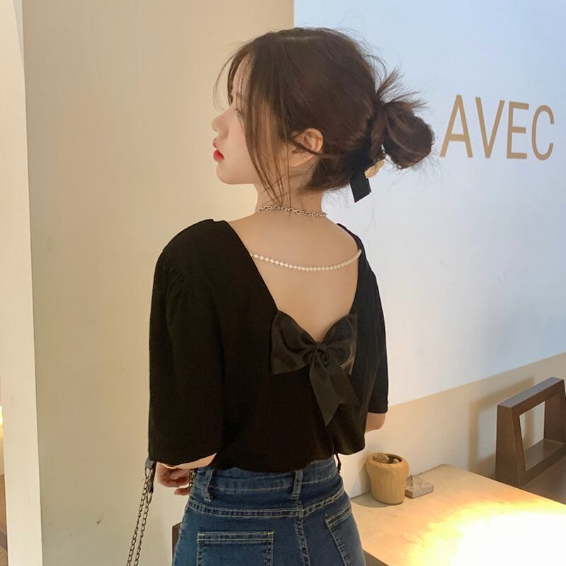 ホワイトTシャツ サマーバックレス 大人ガーリー スウィート キュート カジュアル 夏物 試着室90943764232