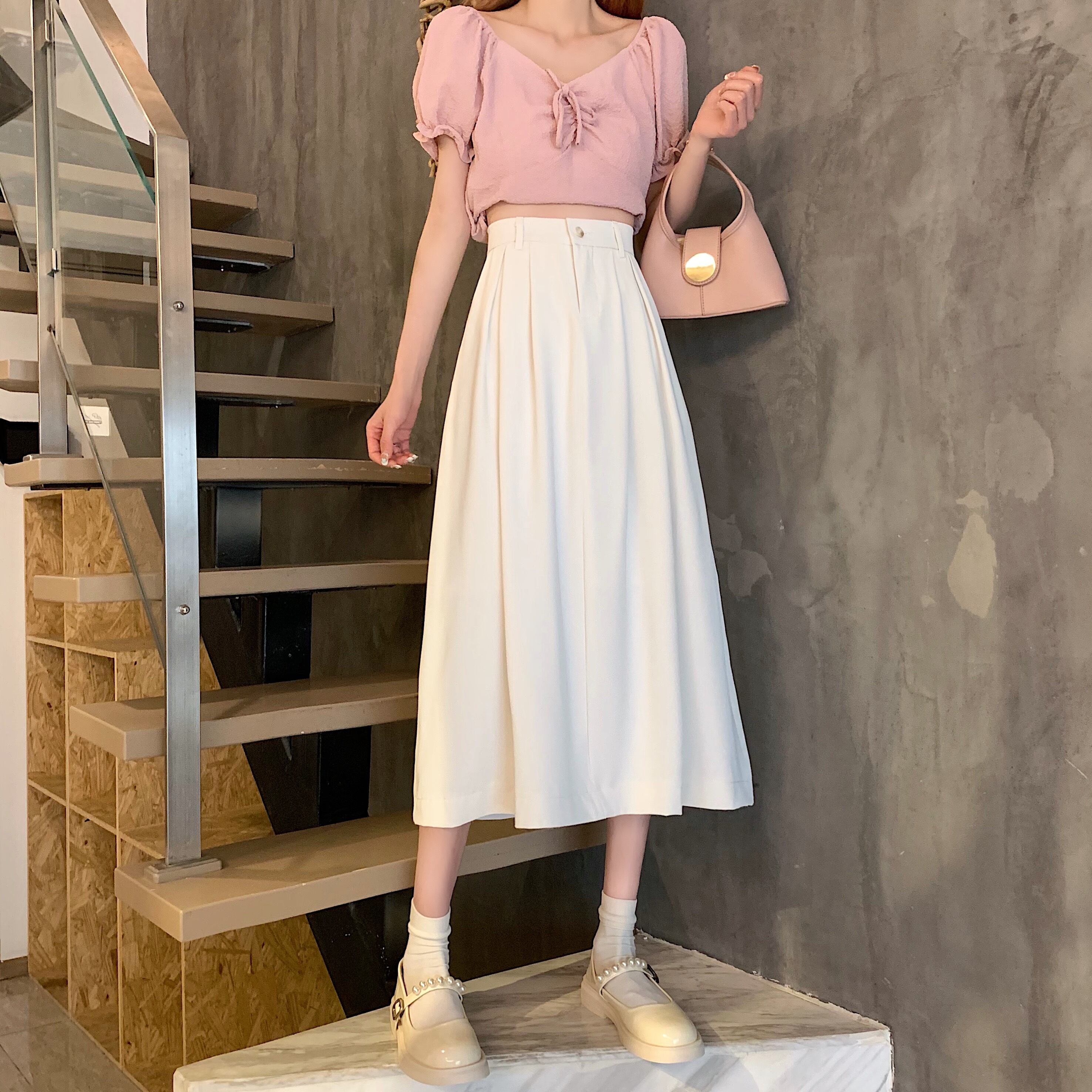 スカート Aラインサマーハイウェストブラックロング 夏物 試着室87856992419