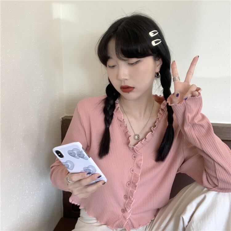 VネックニットTシャツ スプリングスタイル ロング 大人ガーリー スウィート キュート カジュアル 春物 試着室87926243030