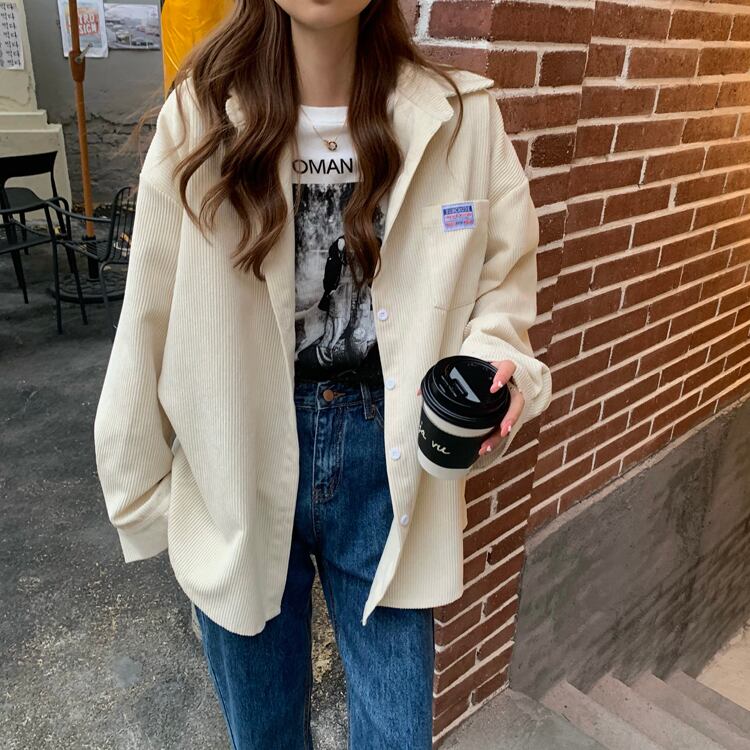 スプリングルーズコーデュロイシャツ ジャケット トップス ストリート 春物 試着室49697886663