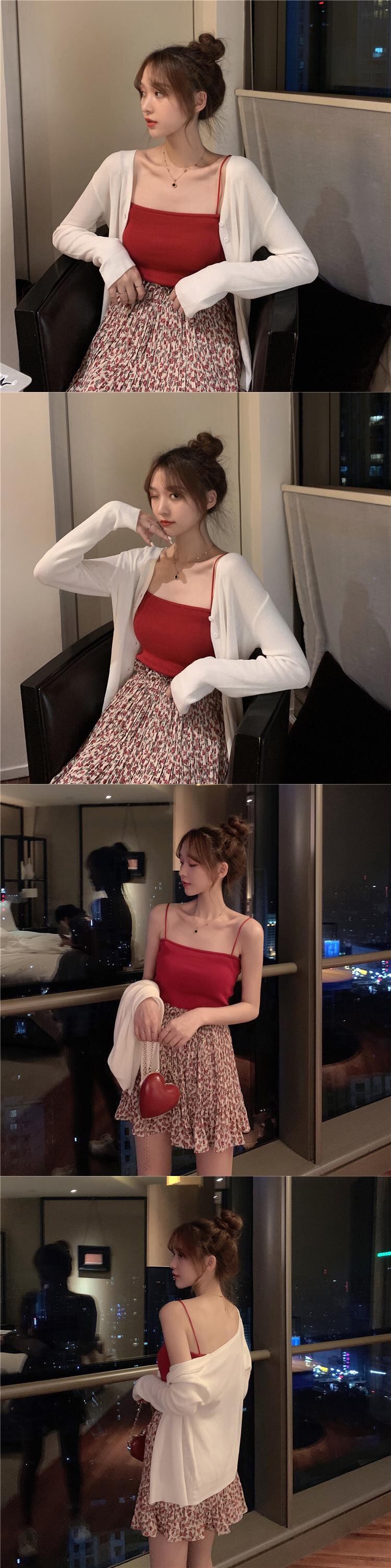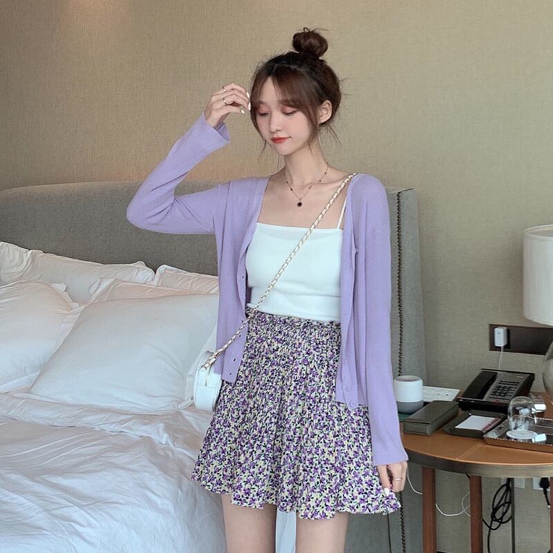 色:パープルカーディガンワンピース,ホワイトカーディガンワンピース,ホワイトスリングシングルピース,赤いスリング1枚,パープルフローラルスカートワンピース,シングル赤花柄スカート