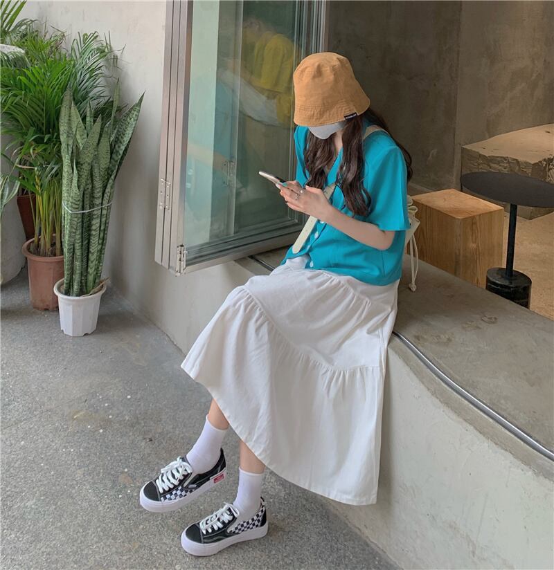 色:ブルートップシングルピース,白いスカートワンピース
