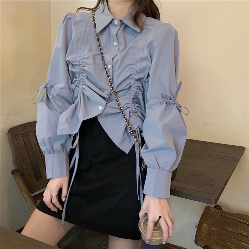 ホワイトシャツ スタンダードスタイルギャザードレス スプリングオータム ロング レトロ 春物 秋物 試着室99611915214