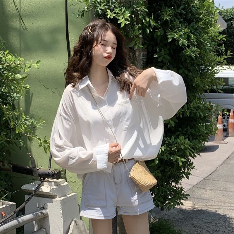ホワイトシャツ ルーズスタイルスタンダードスプリングオータムジャケット トップス レトロ 春物 秋物 試着室5392980908
