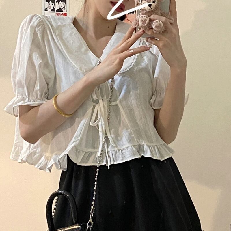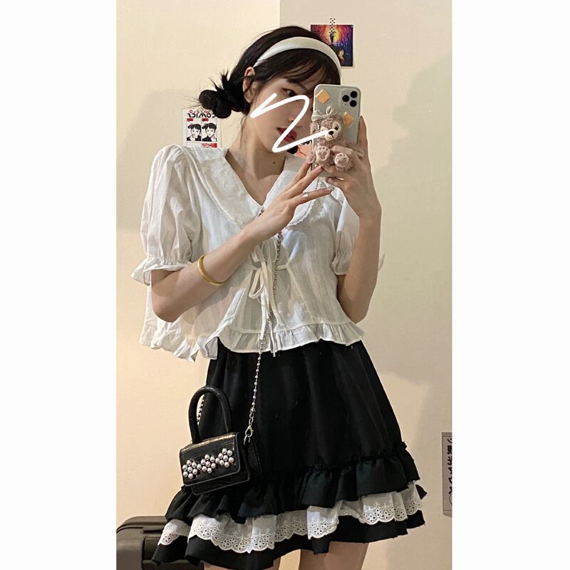 サマーブラウス スタイルスタンダードスカート レトロ ストリート 大人ガーリー スウィート キュート カジュアル 夏物 試着室56063597179