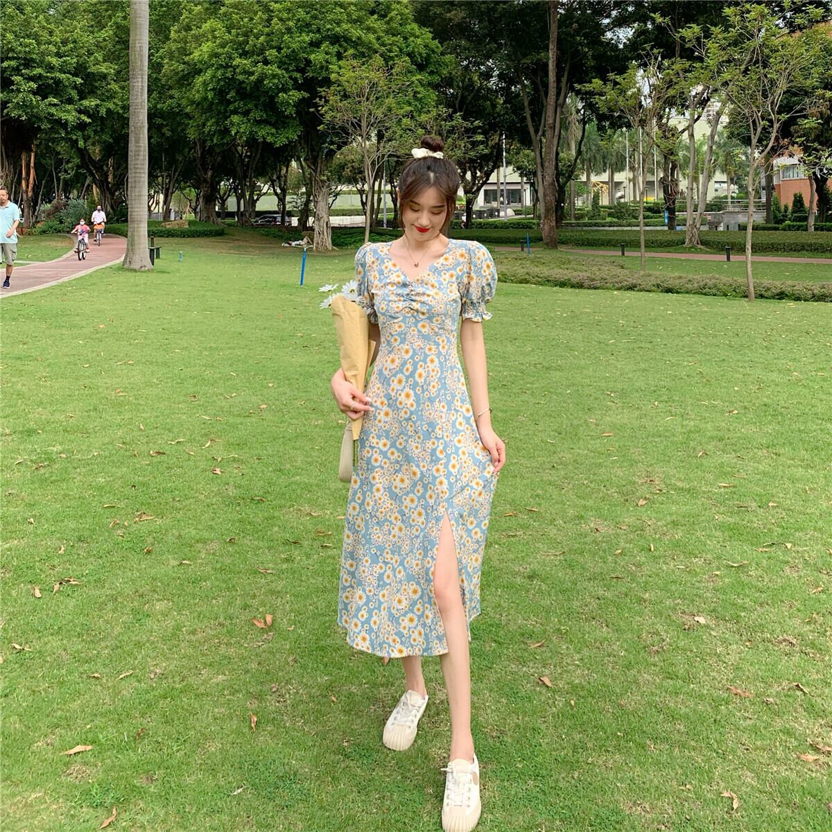 フローラルドレス サマースリーブロングスカート 夏物 花柄 スクウェア 試着室35628384153