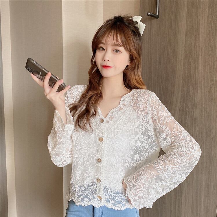 薄手レディースサマーカーディガンジャケット スタイルショートトップス レースシャツ 夏物 試着室36692672974
