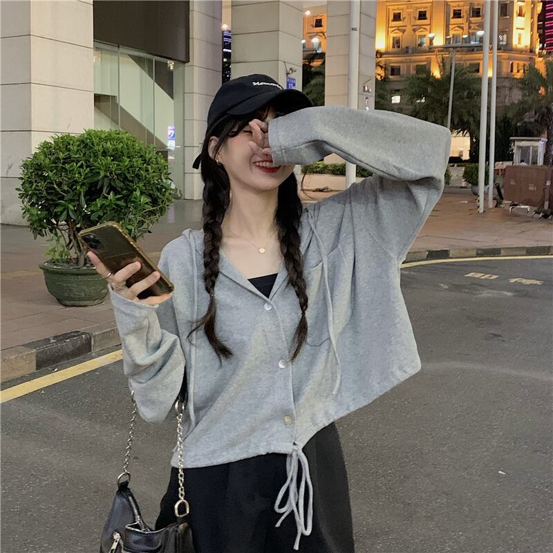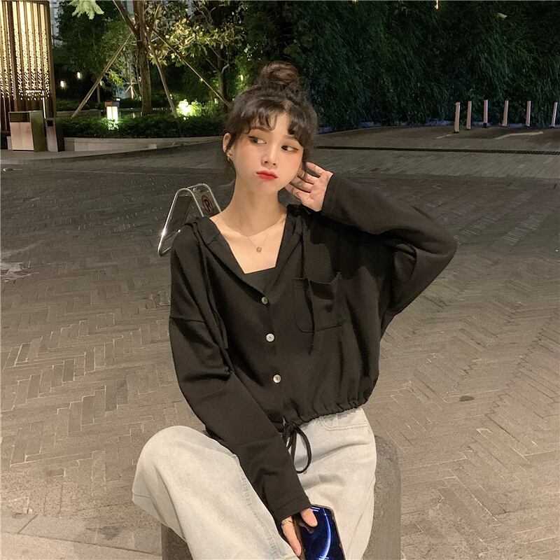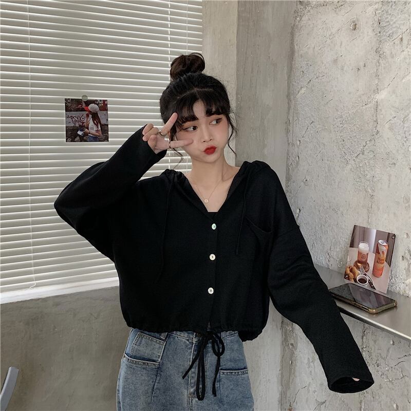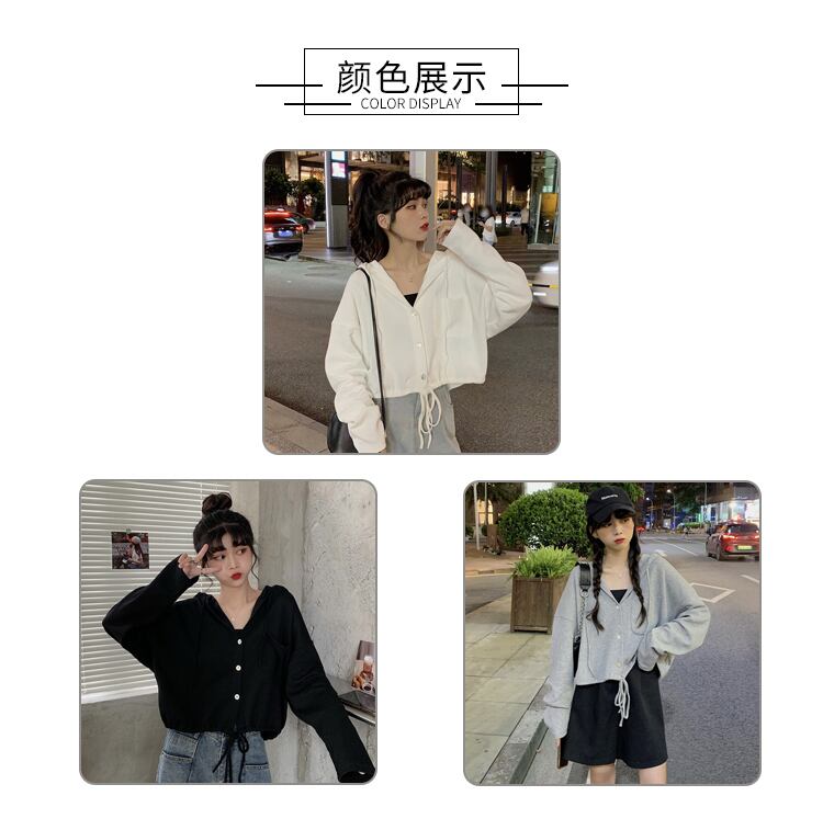 スプリングスタイルルーズショートトップス フードホワイトセーター レディース 春物 試着室66917442314