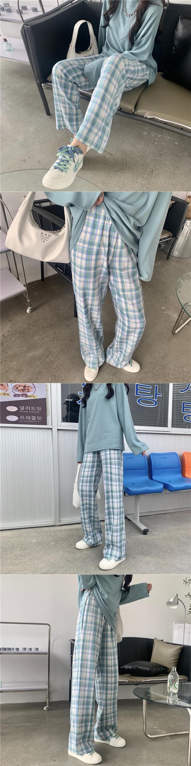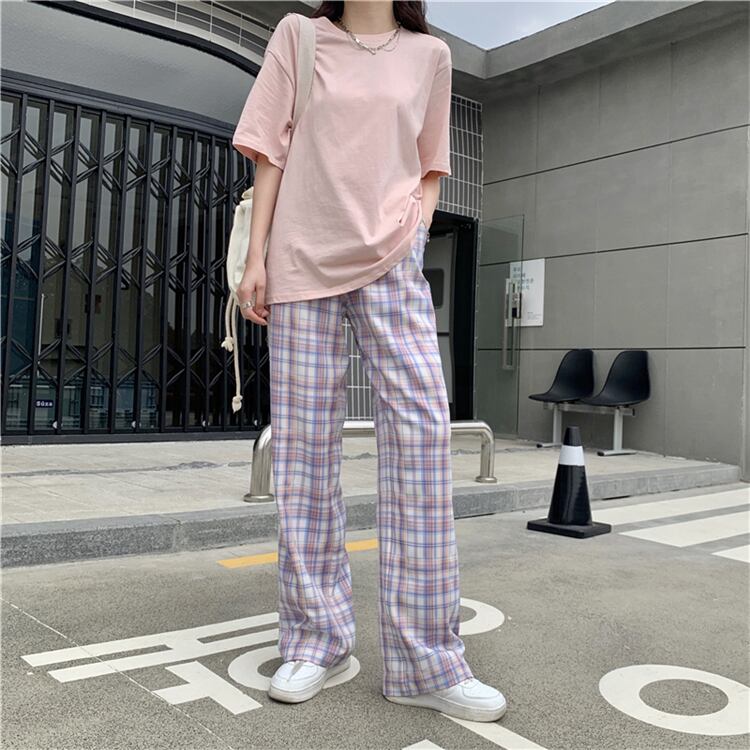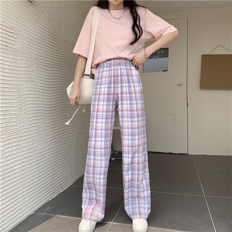 格子柄パンツ ルーズサマーハイウェスト薄手 夏物 試着室44844639105