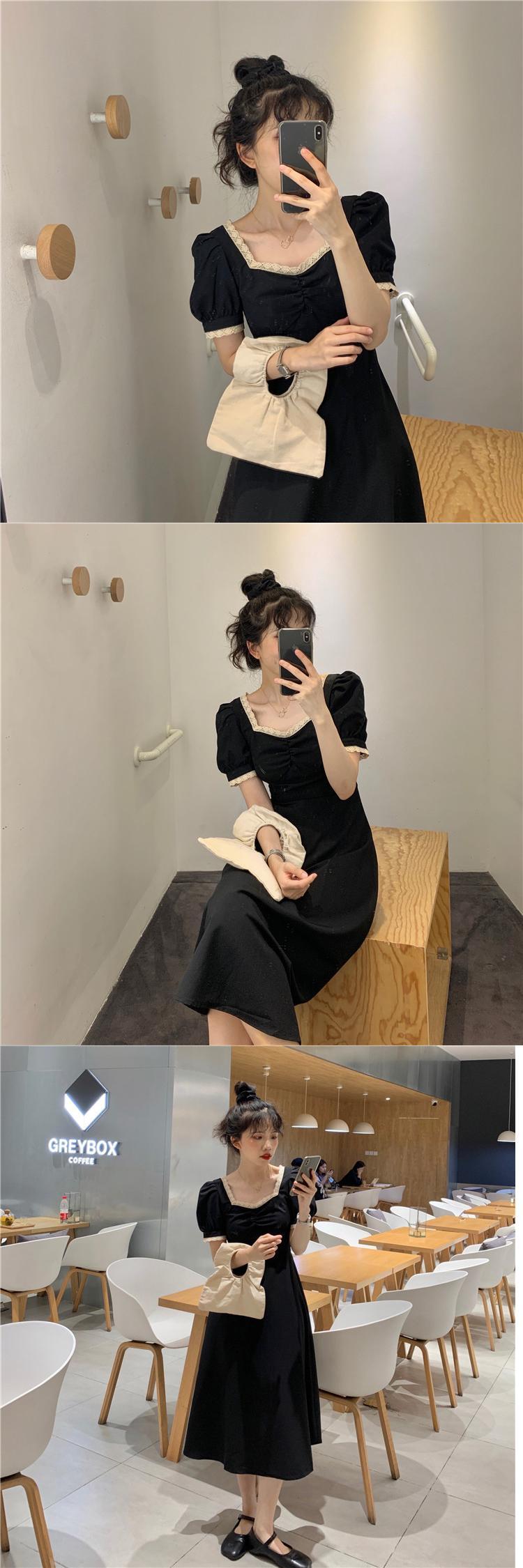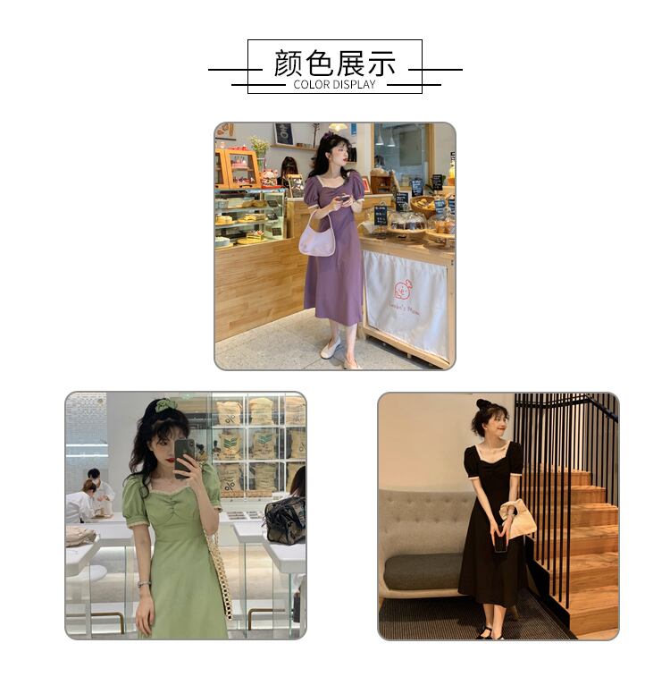 カラードレス スタンダードロングスカート サマースタイル レトロ 夏物 スクウェア 試着室64842288701