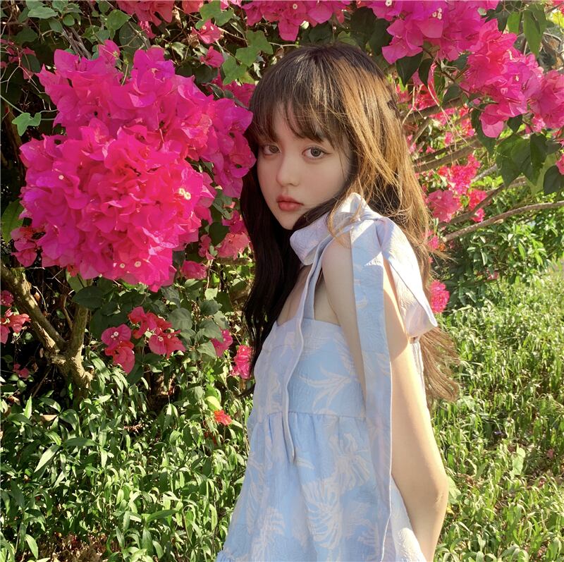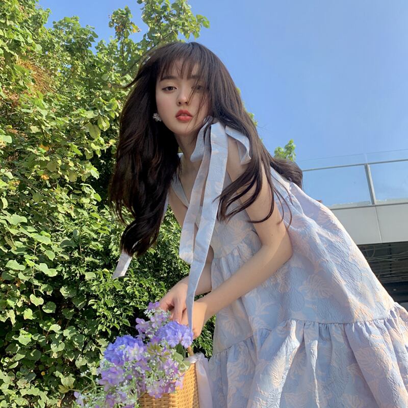 色:白いシャツワンピース,青いサスペンダースカートのワンピース