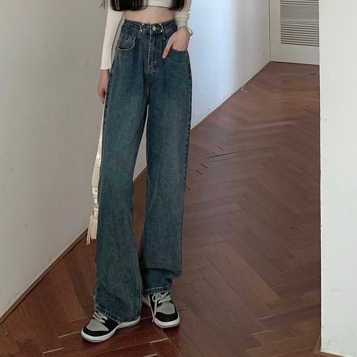 スタンダードハイウェストウェスト薄手スプリングオータムパンツ ジーンズ レトロ 春物 秋物 試着室81567248330