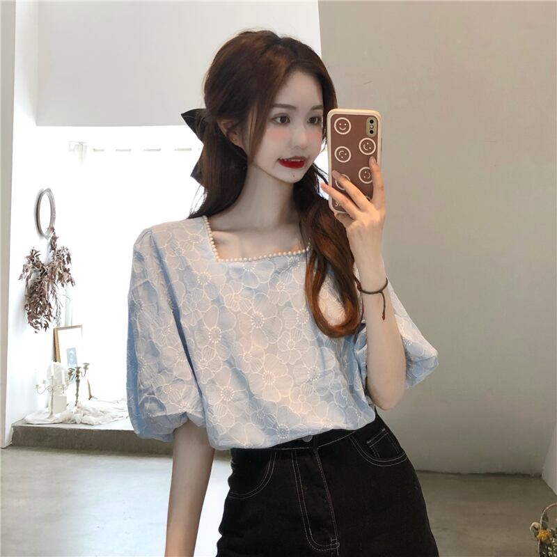 ブルースリーブシャツ サマーカラートップス 夏物 スクウェア 試着室4910803349