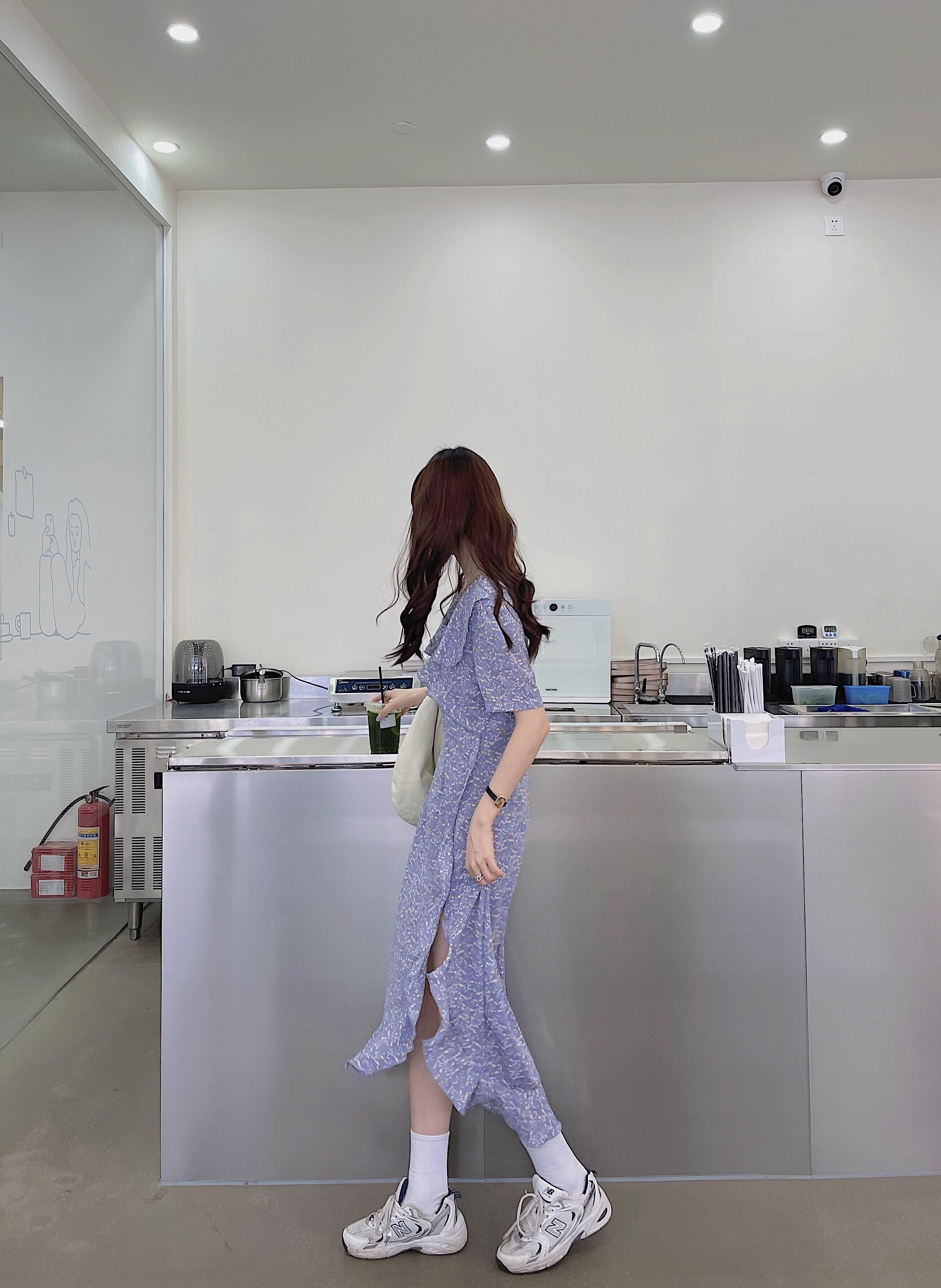 フローラルシフォンドレス サマーロングスカート 夏物 花柄 パープル 試着室81466815058