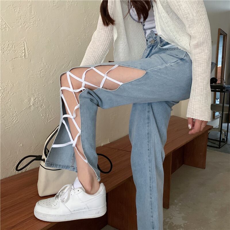 ジーンズ ルーズサマーハイウェストウェスト薄手パンツ 夏物 試着室82070818095
